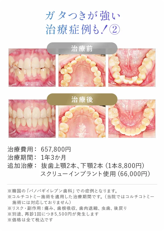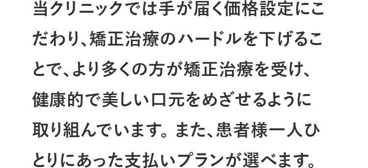 ※検査の結果、ワイヤー矯正以外の追加治療を推奨されることがあります。詳しくは歯科医師までご相談ください。料金の詳細はこちらをご確認ください。