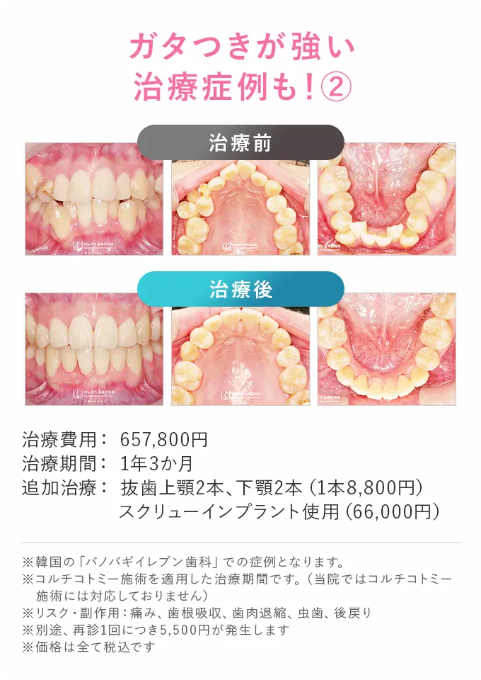 リスク:痛み・歯根吸収・歯肉退縮・虫歯・後戻り