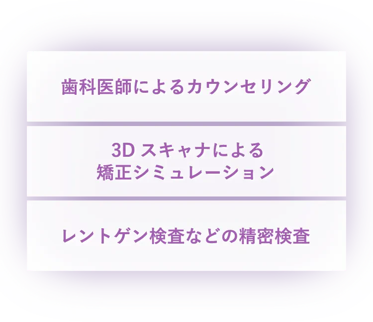 治療期間は患者様の歯並びや口腔内の状態によって異なります。無料検診で、治療プランと期間について詳しくご説明いたしますので、まずはお気軽にご相談ください。
