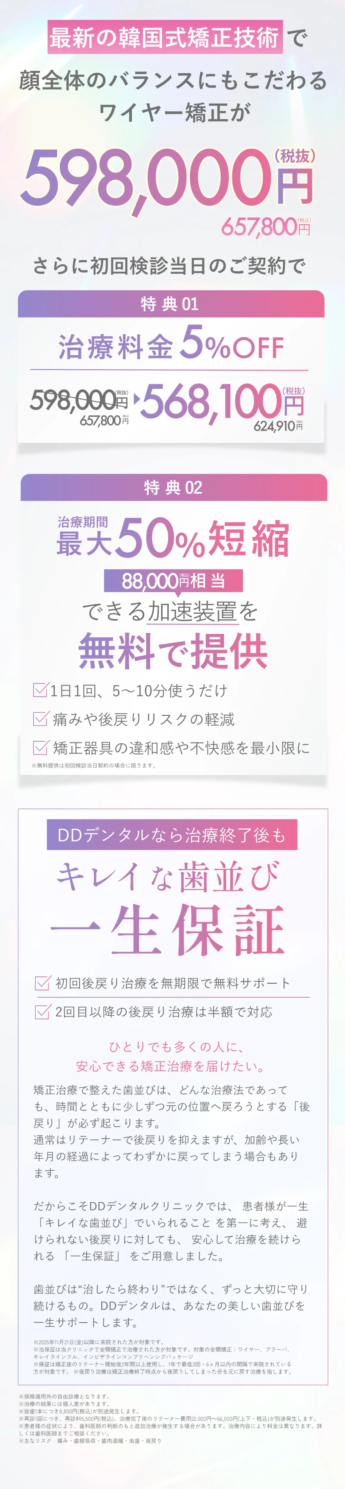 ホワイトワイヤーやハーフリンガル矯正など