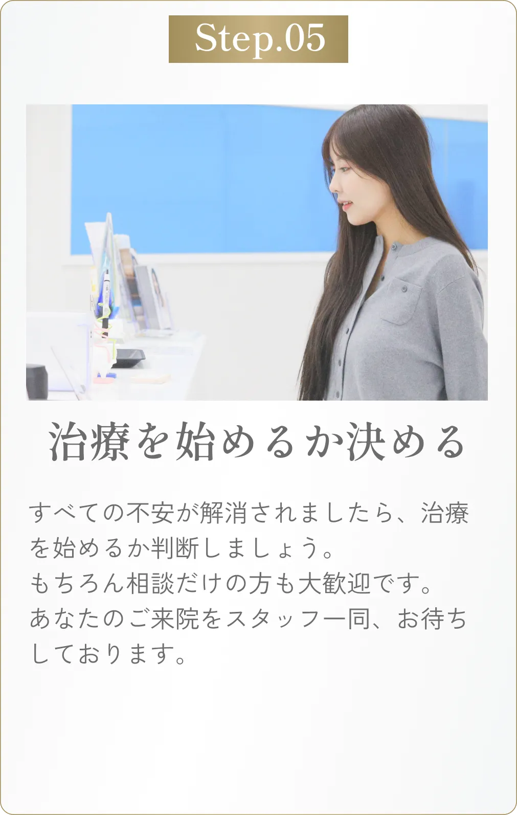当院では、多くの男性患者様にもご利用いただいております。特に接客業や営業職など、人と接する機会が多い方々から好評です。安心してご来院ください。